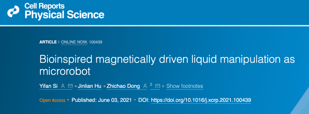 相关研究论文以“Bioinspired magnetically driven liquid manipulation as microrobot”为题,在线发表已经于 6 月 3 日发表在《细胞报告-物理科学》(Cell Reports Physical Science)杂志上。